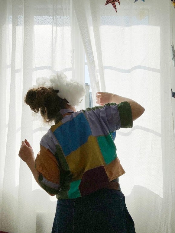 Le modèle photo fait un taille 36/38 en haut pour 1m55.