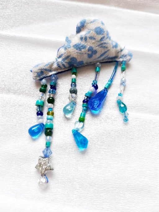 piece unique, concue a partir de chutes de tissus provenant des chemises, revalorisées pour creer de petits bijou textile.