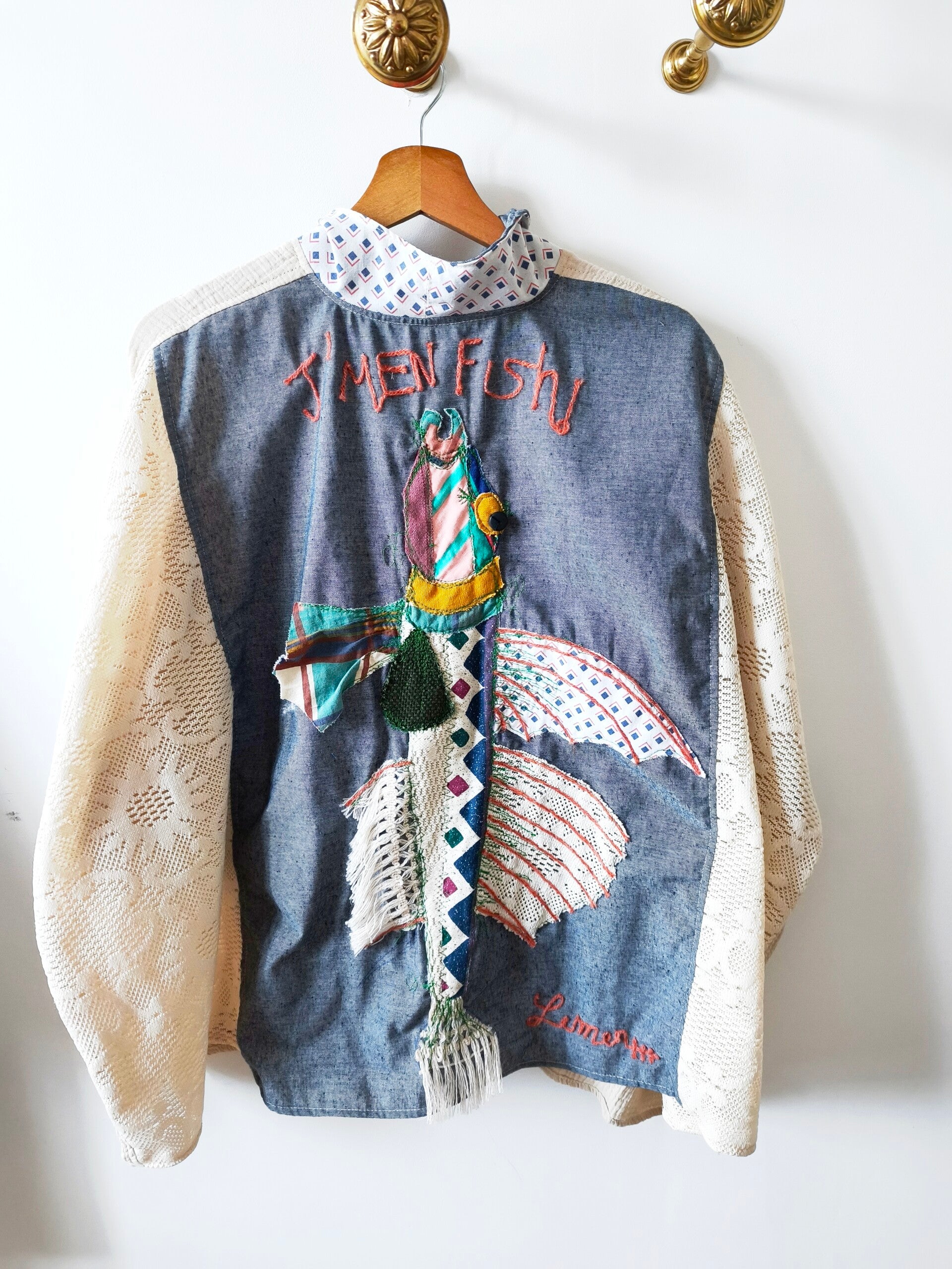 découpé dans un drap, chutes de tissus, dos entierment realisé a la main.